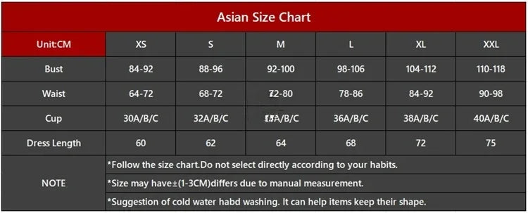 - Extra chica (XS): Busto: 84-92 cm | Cintura: 64-72 cm | Largo: 60 cm