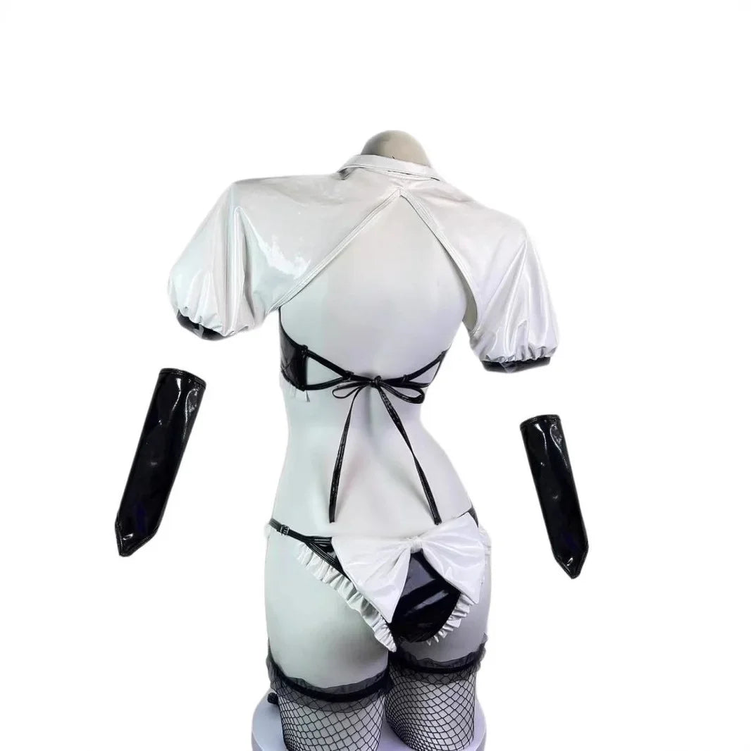 - Poliuretano (PU) tipo cuero sintético con acabado brillante espejo